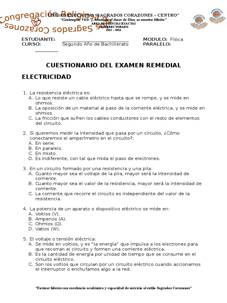 Test Remedial Fisica 2 Pdf Resistencia Electrica Y Conductancia Corriente Electrica