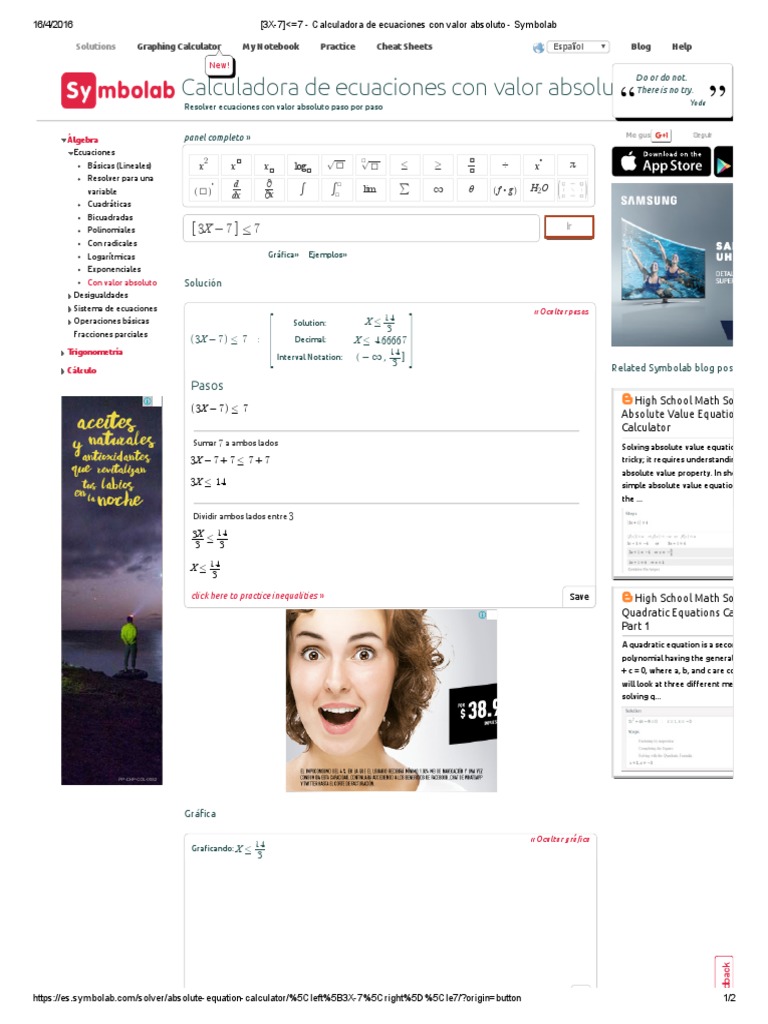 3x 7 7 Calculadora De Ecuaciones Con Valor Absoluto Symbolab Pdf Polinomio Desigualdad Matematicas