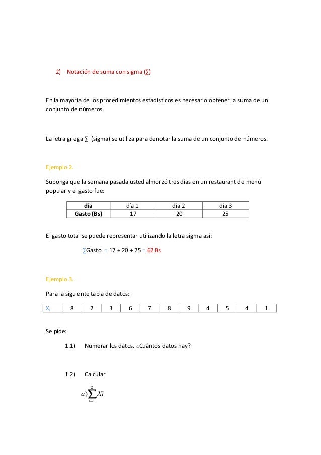 Sumatorio sobre i desde m hasta n de x sub-i. Puedes resolver algunas sumas con la Calculadora Sigma. La notación científica es muy útil para hacer que números muy grandes o muy pequeños sean.